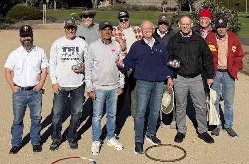 We play bocce every Thursday at Almaden Lake Park with the exception of the second Thursday which is dedicated to the Sirs luncheon. We start at 10am and finish around noon. There is no need to RSVP, just show up around ten and we’ll fold you into the game.