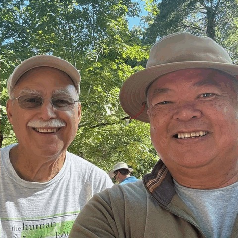 Ursula was our photographer so I cannot be blamed for snapping the photo while Gregg had his head down, probably for sneezing. Or maybe he saw a snake near Atsu’s feet.