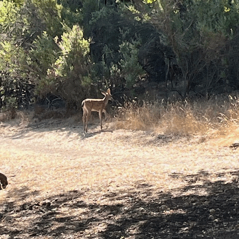 It was not really a hike on July 29 but a real “walk-in-the-park”. Granted it was 4.7 miles long but the weather was perfect, the scenery was very pleasant and the company was super friendly and interesting. Joining me were Ron Gaumont, Joe Lowry and Gregg Walters. We started at the Almaden Lake city park and followed the Los Alamitos Creek up to Leland High School. We saw a couple young bucks (real ones-not humans kind) and a white egret among some ducks that was really asking to be photographed; so I obliged.