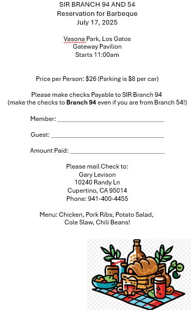 Finally, if you are wondering why the Big Sir can also be called Branch President, this is one of several new rules mentioned in Rich Carlston’s Newsletter: https://sirinc.org/newsletters And checkout the credits: Our own SIR AREA REP, Wes Howard is now on the State Board of Directors- so we have friends in high places!